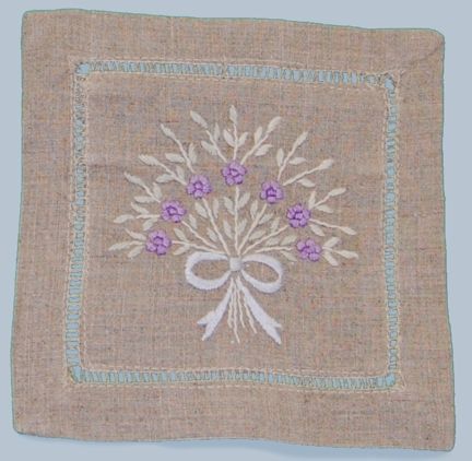 HomeWholesale Products : Gift Items : Bags of all Shapes and Sizes : 100% Natural Linen Sachet with Lavender Bouquet Embroidery![]() This 100% Natural Linen Sachet Bag with back opening has a beautiful embroidered bouquet of lavender and fancy hemstitching. The outer edge of this sachet has a single row of hemstitching. This small square bag measures approximately 5" x 5" and the inner pouch area, inside the single row of hemstitching, measures about 3.25" x 3.25". This style bag has an open top sachet pocket accessible from the back. This bag is made from 100% Natural Linen fabric. Add your own Potpourri, Lavender, or other sweet herbs to create a fragrant sachet. You could also simply add a bit of stuffing and a hanging loop for a room decorating pillow or use this as a small gift bag. The back may be left open or sewn closed (a few hand stitches would work best). If you wish to permanently close the top, try a few small dabs of clear craft glue (I recommend Aleene’s Brand Craft Glue) or try convenient iron-on adhesive tape (try Therm O Web’s Heat’n Bond brand). These products can be found at your local craft or sewing shop or through online shops. |